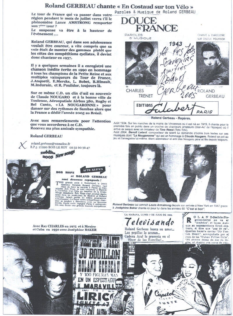 Il est vrai que je n'ai rien fait pour, j'avais choisi une autre voie. Par contre je serai très intéressé d'avoir des contacts avec le milieu artistique et d'avoir des occasions de me produire avec des musiciens de jazz ou autres surtout pour Nougaro. J'ai écrit beaucoup de chansons dans différents styles mais je ne suis pas à proprement parler un instrumentiste mais plutôt un auteur mélodisteJe suis donc ouvert à toutes propositions concernant des hommages éventuels à Claude Nougaro. Le seul hic, c'est peut-être la distance ,vous habitez sans doute à Toulouse et Roanne n'est pas tout à fait à côté.