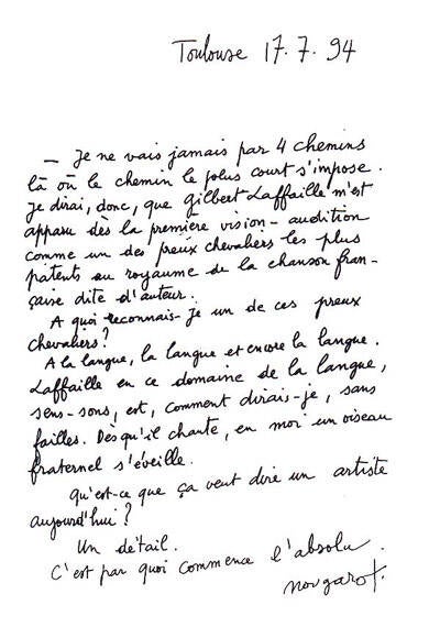 Claude Nougaro parlant de Christian Laborde : «Christian Laborde est mon frère de race mentale, c’est un poète c’est-à-dire un homme qui parle une langue de couleurs à délivrer les grands baisers de l’âme»